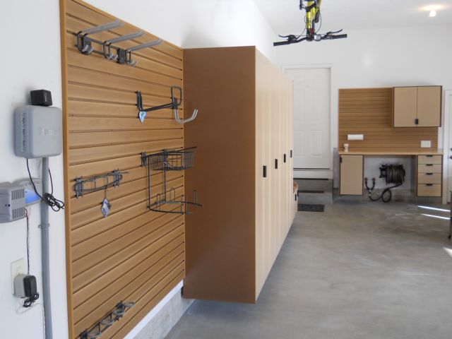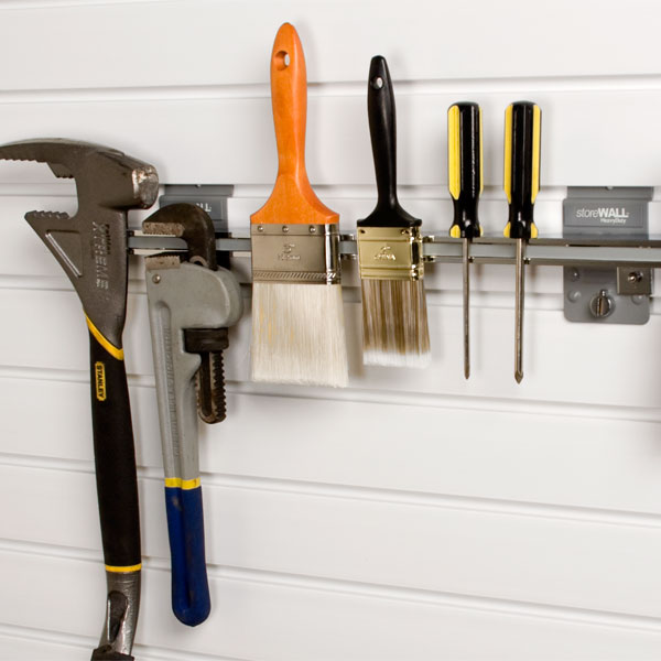 So what’s an affordable, quick, and easy storage solution to get all the stuff you need to store off the floor? Slatwall panels and slatwall accessories! Save space with garage wall storage .